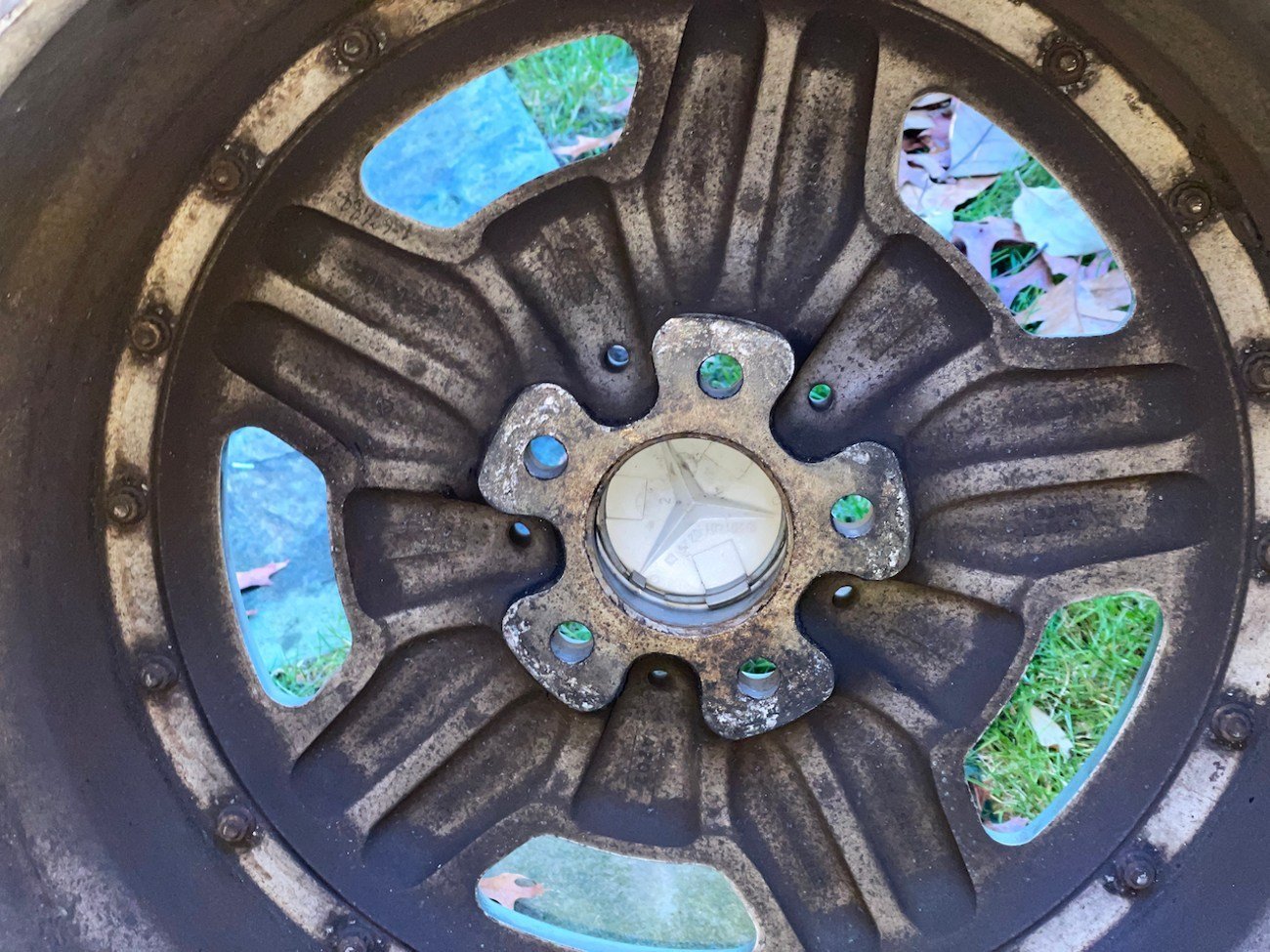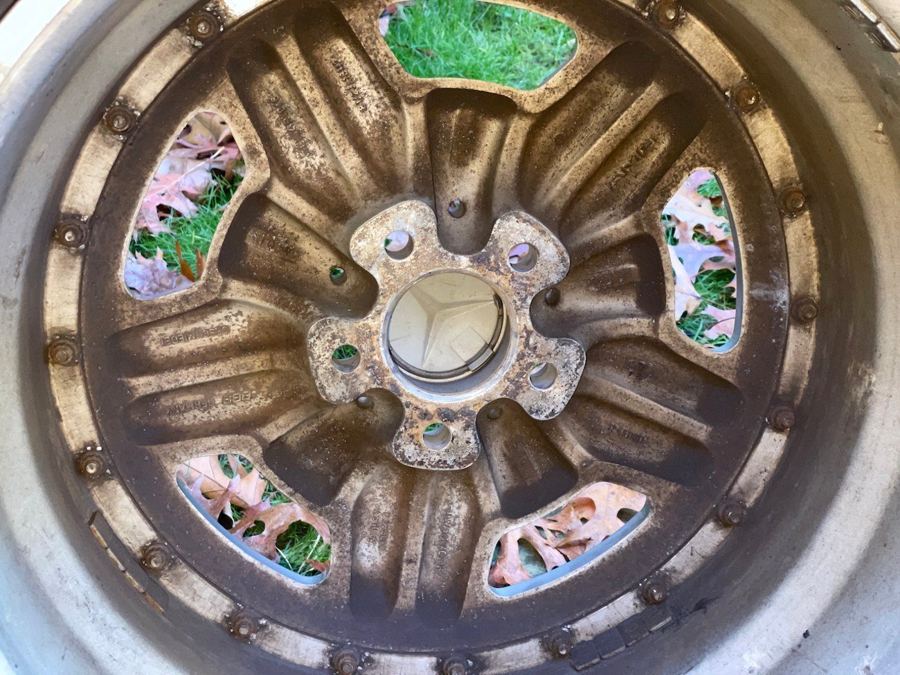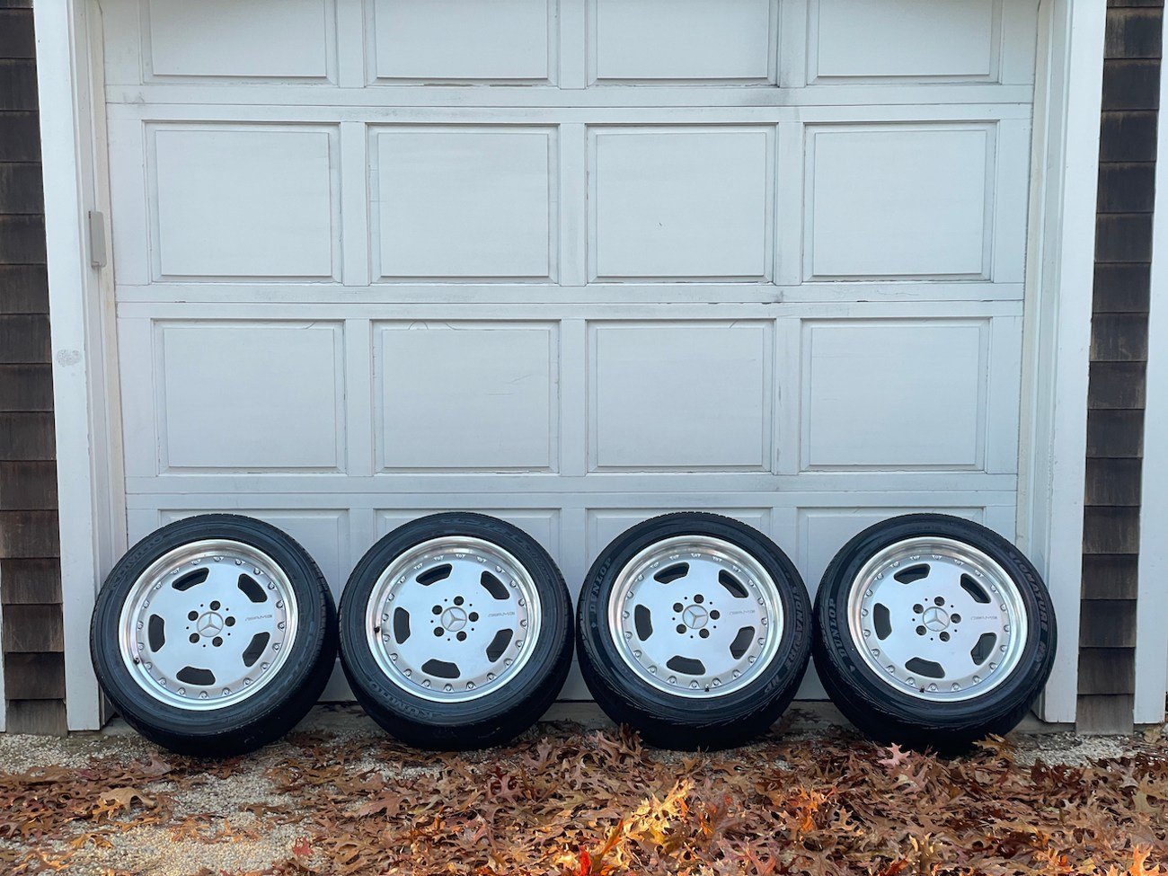 Authentic 2-Piece AMG Wheels by BBS — Light Patina, Complete with Tires & Caps