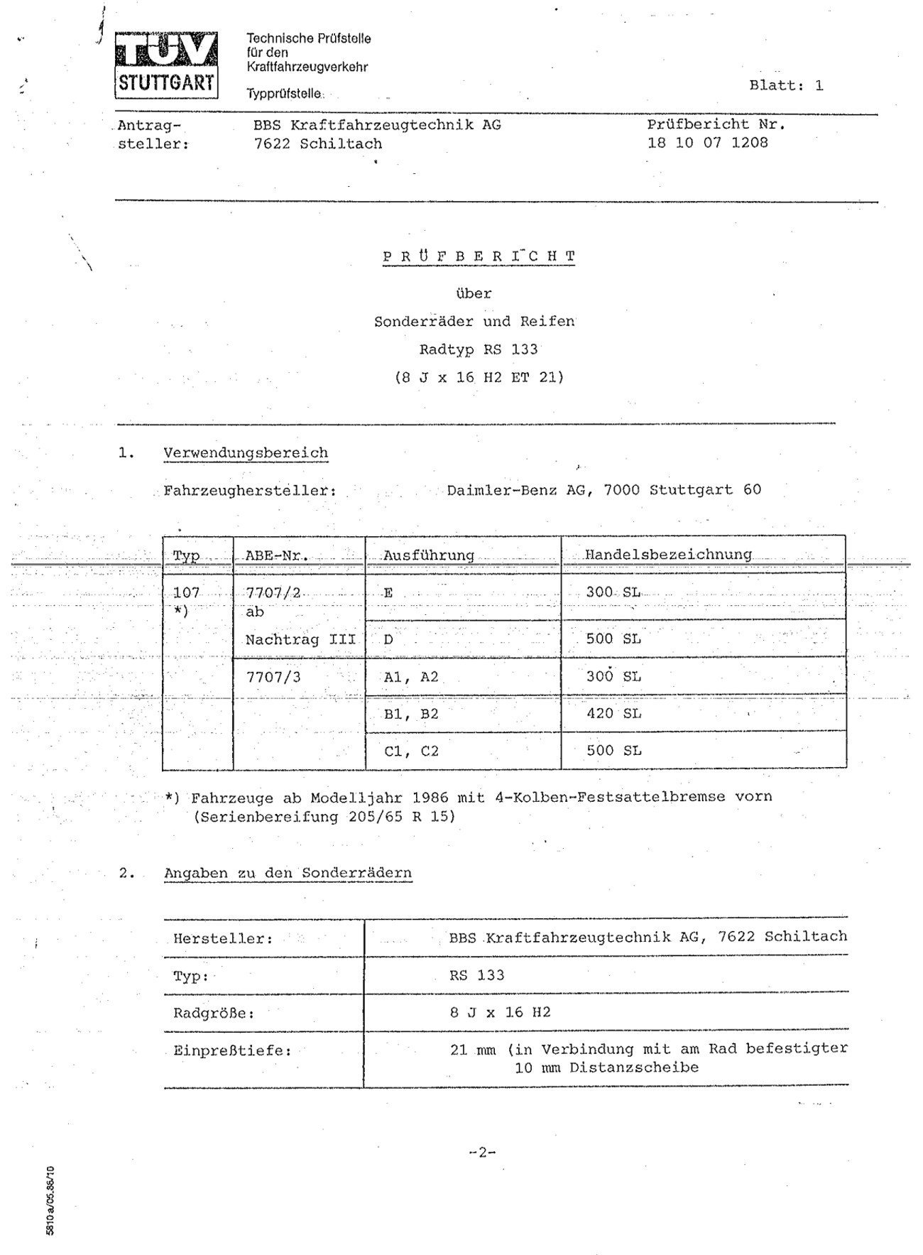 Accessories: BBS center caps included; TÜV certificate verifies specifications