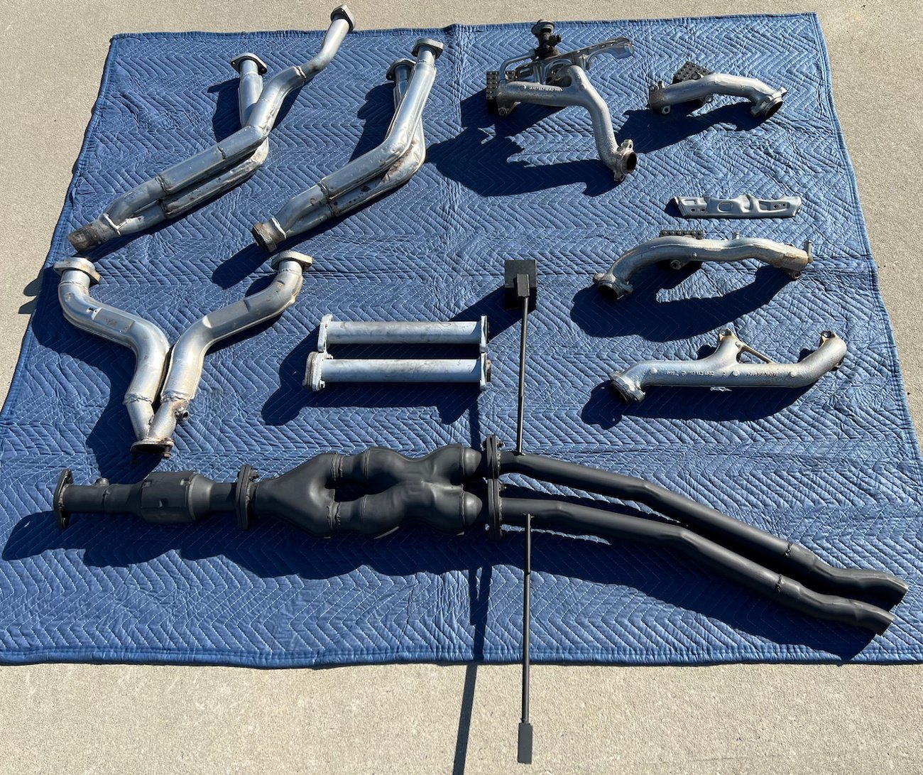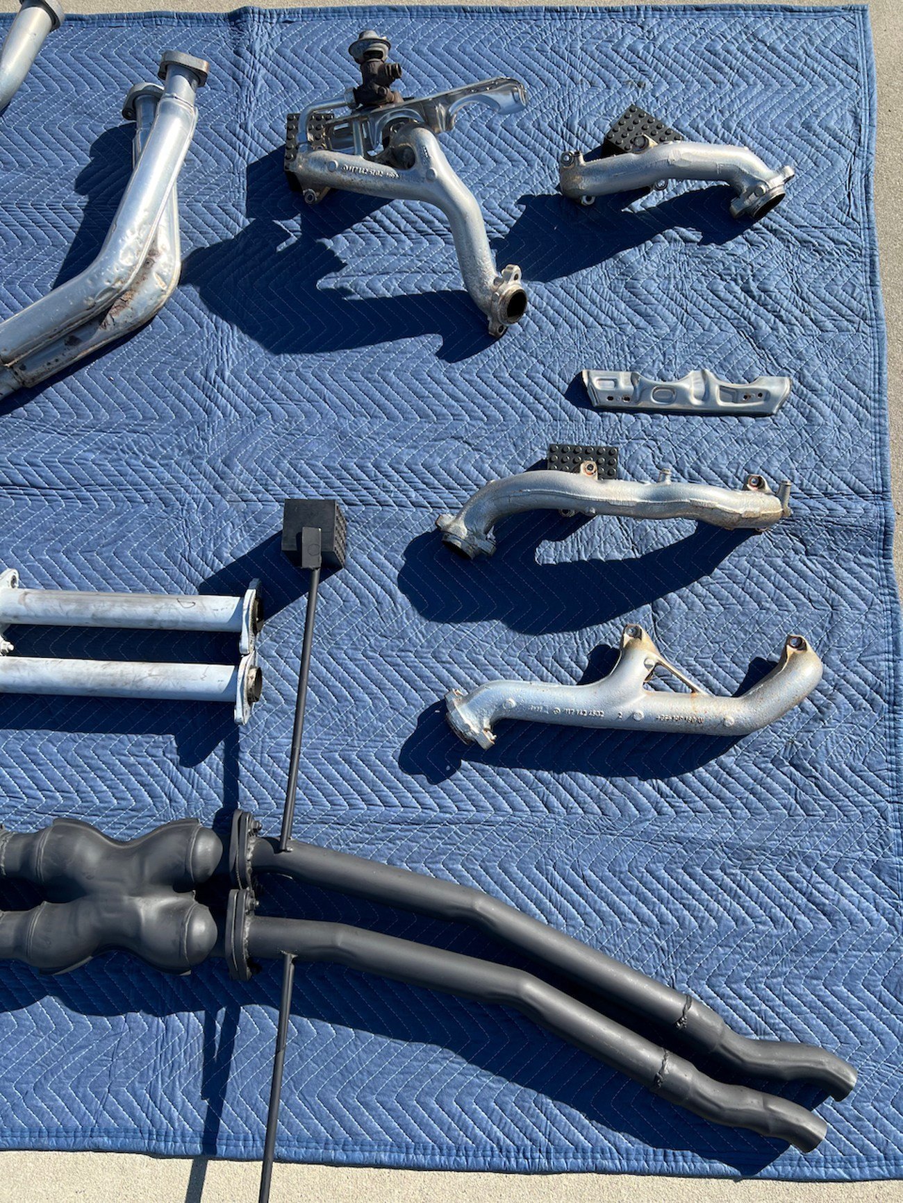 Offered here is a desirable Mercedes-Benz Tri-Y exhaust system designed for M117-powered W126 S-Class sedans and C126 coupes (1986-1991). This system includes authentic Mercedes Tri-Y tubular headers, a ceramic-coated downpipe and Y-pipe, EGR components, and a partial rear exhaust section originally removed from a 1991 Japan-market 560SEL AMG.