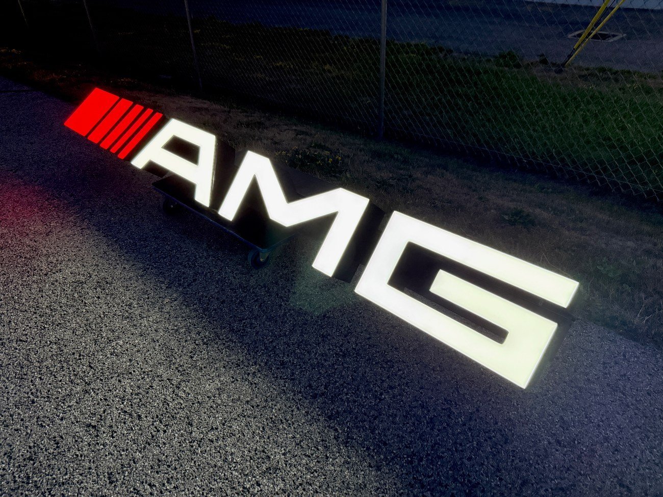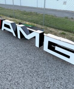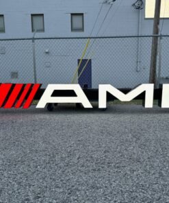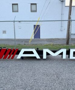 This 10-foot AMG illuminated sign is ideal for Mercedes-AMG enthusiasts, collectors, and businesses seeking a showroom-quality display piece. Due to its original construction for a dealership expansion and cancellation of the project, signs like this are rare and hard to source. The LED-lit modern AMG letters provide a professional look suitable for garages, showrooms, events, or car collections.