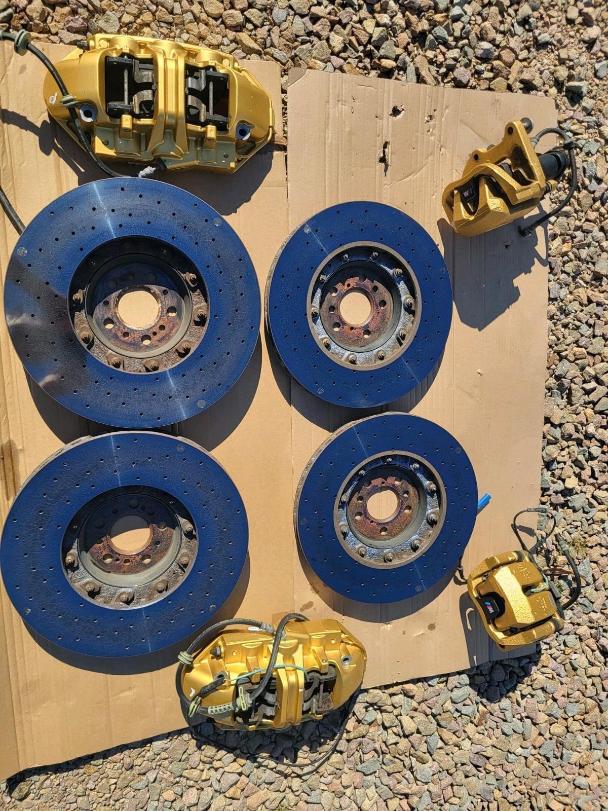 The ultimate braking performance upgrade. This is an absolute, original, and complete set of genuine BMW M Carbon Ceramic Brakes, removed after approximately 51,000 kilometers. This comprehensive kit includes every necessary component for a direct retrofit onto your BMW M5 F90 or M8 (F91, F92, F93), transforming your vehicle’s stopping power, reducing unsprung weight, and adding a distinctive visual signature.