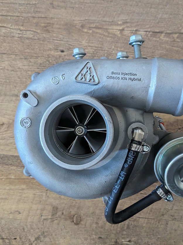 Designed for OM606 owners who love the quick spool of the stock turbo but want real top-end power without fabrication. This hybrid unit retains OEM fitment while delivering a big jump in airflow and horsepower. No custom lines, no adapters, no fabricating — just remove your factory turbo and bolt this one on.