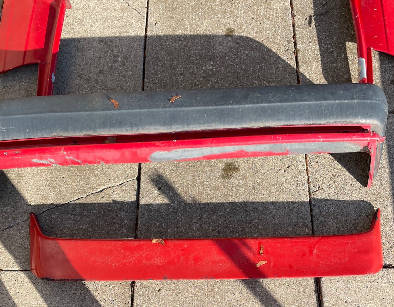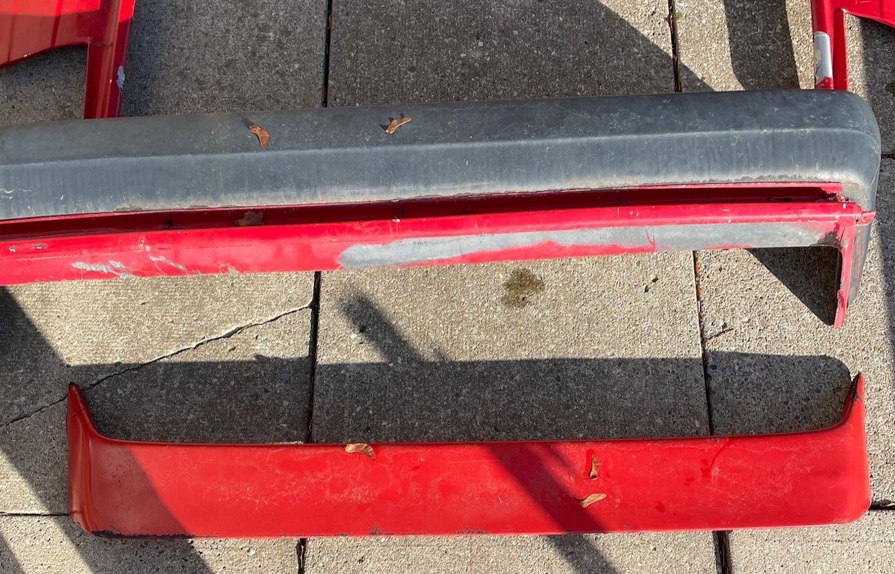 Restoration tip: Repair/ reinforce the cracked area in the front bumper prior to final finish; all other pieces are straightforward to refinish and bolt-on.