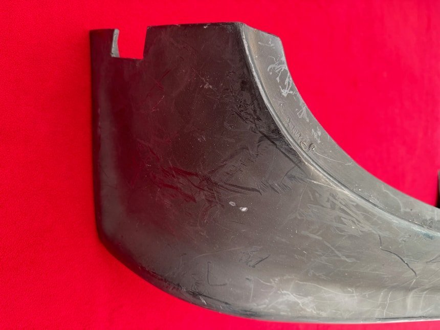 Crafted from high-quality polyurethane, this front lip is remarkably durable yet lightweight, ensuring it enhances the aerodynamics and styling of your classic SL-Class without adding unnecessary weight. The part remains in gently used condition, and while it appears that it may have been previously mounted—likely for display purposes—there are no scrapes or damage on the underside, demonstrating careful preservation. A thin layer of primer remains over the surface, which is peeling slightly in places, but the lip has never been painted, making it ideal for collectors or restoration projects seeking original components.