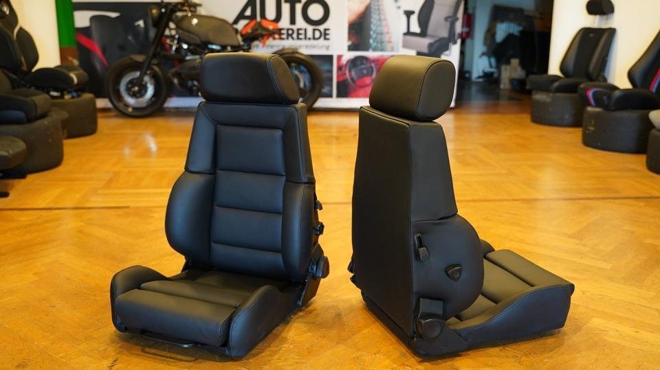 2 Recaro Ideal Seat CT – Black Leather – Reupholstered Vintage Car Seats