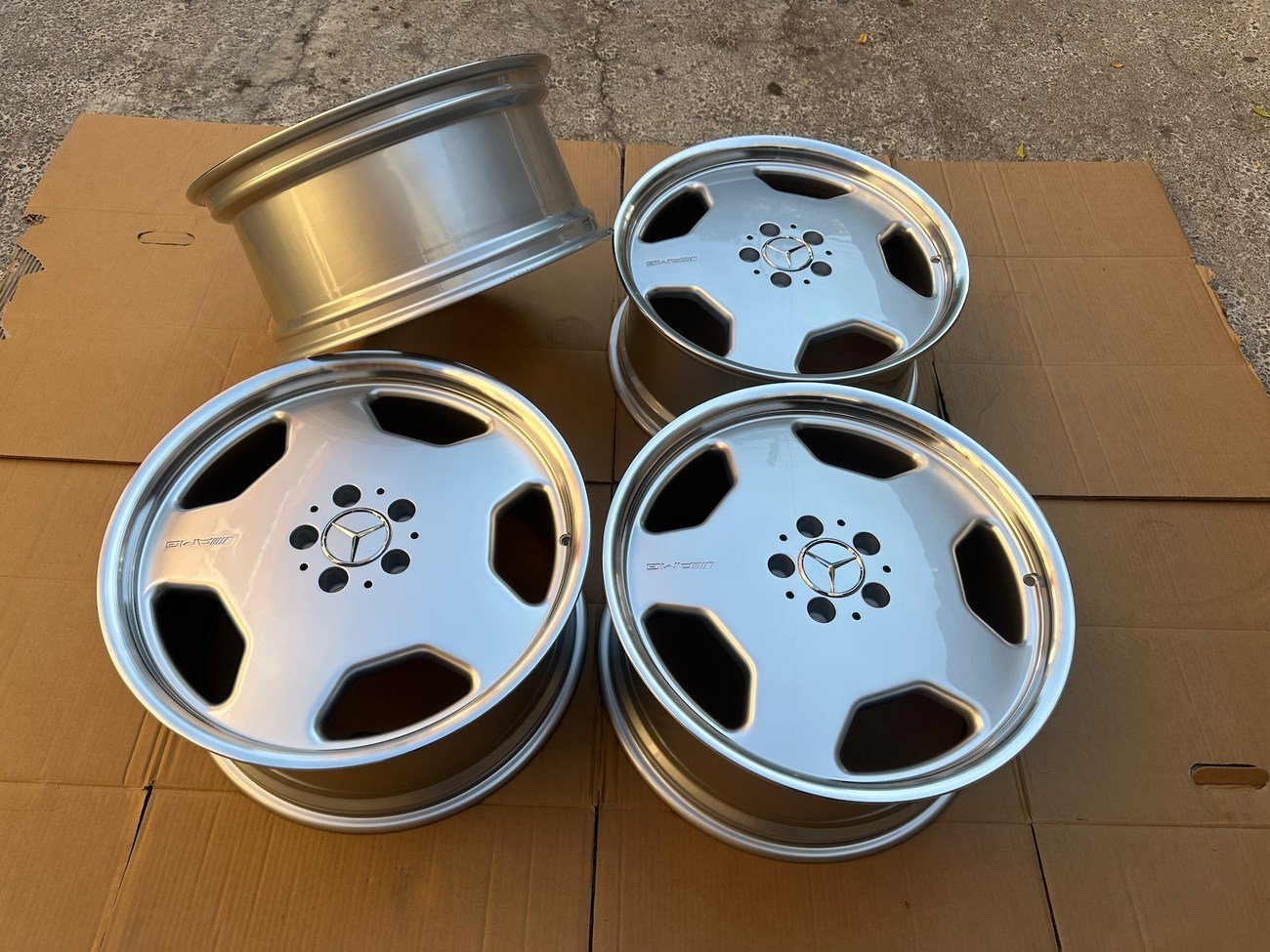 Their bold polished lip and deep monoblock face became emblematic of AMG’s 1990s design language, commonly seen on top-spec V12 flagships.