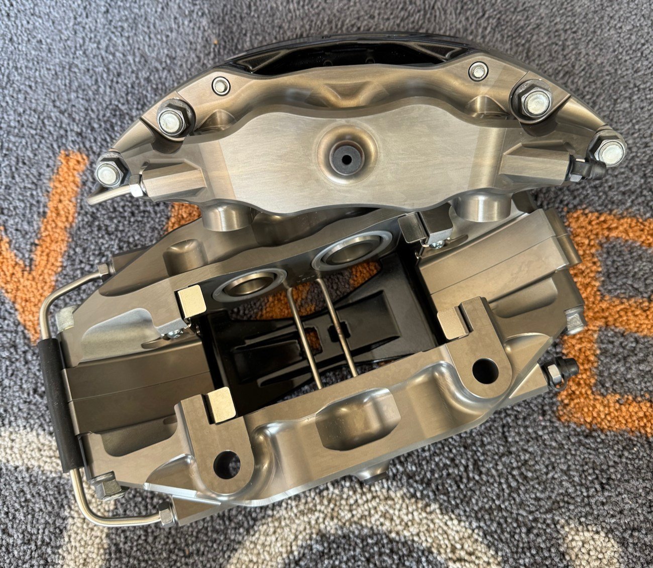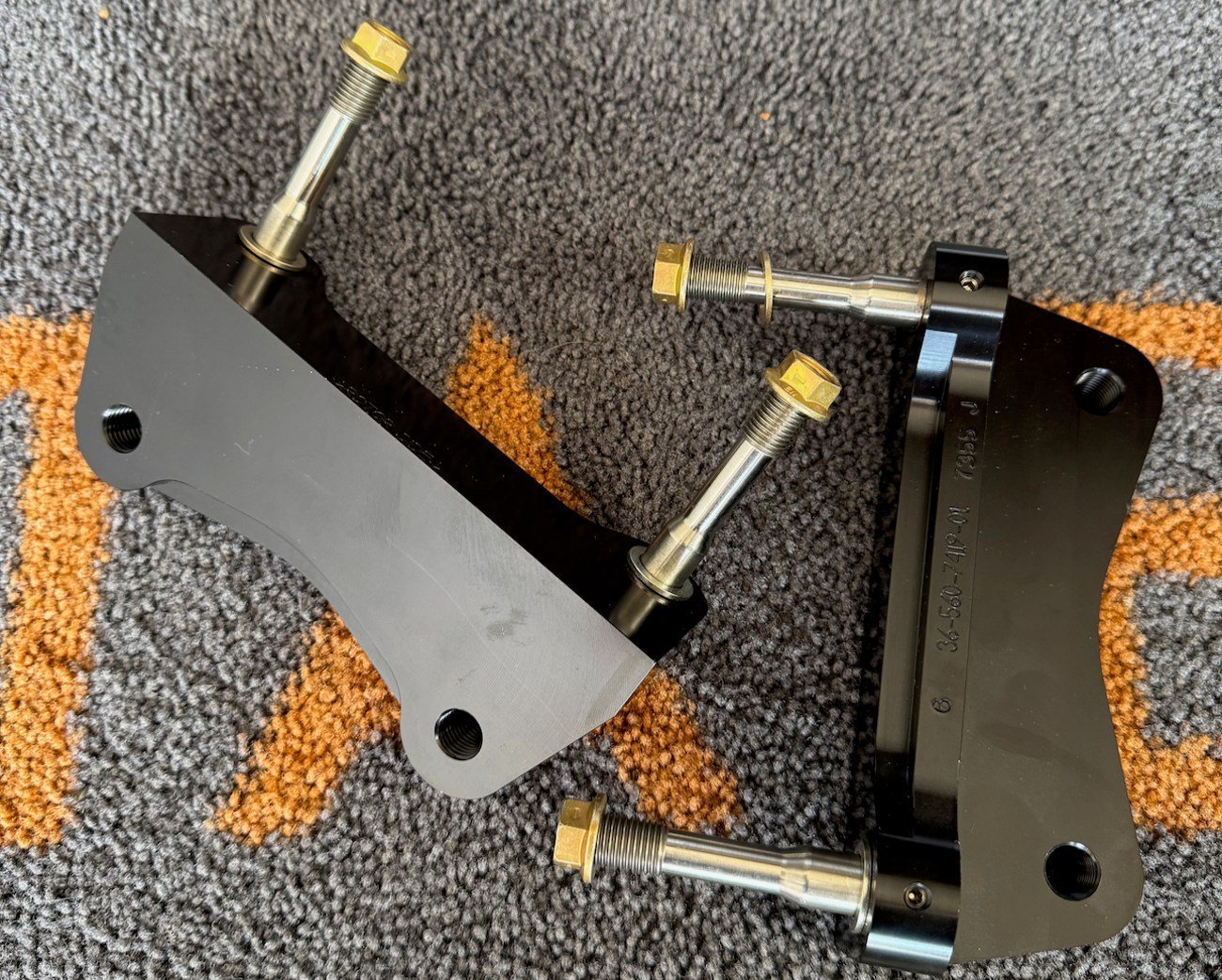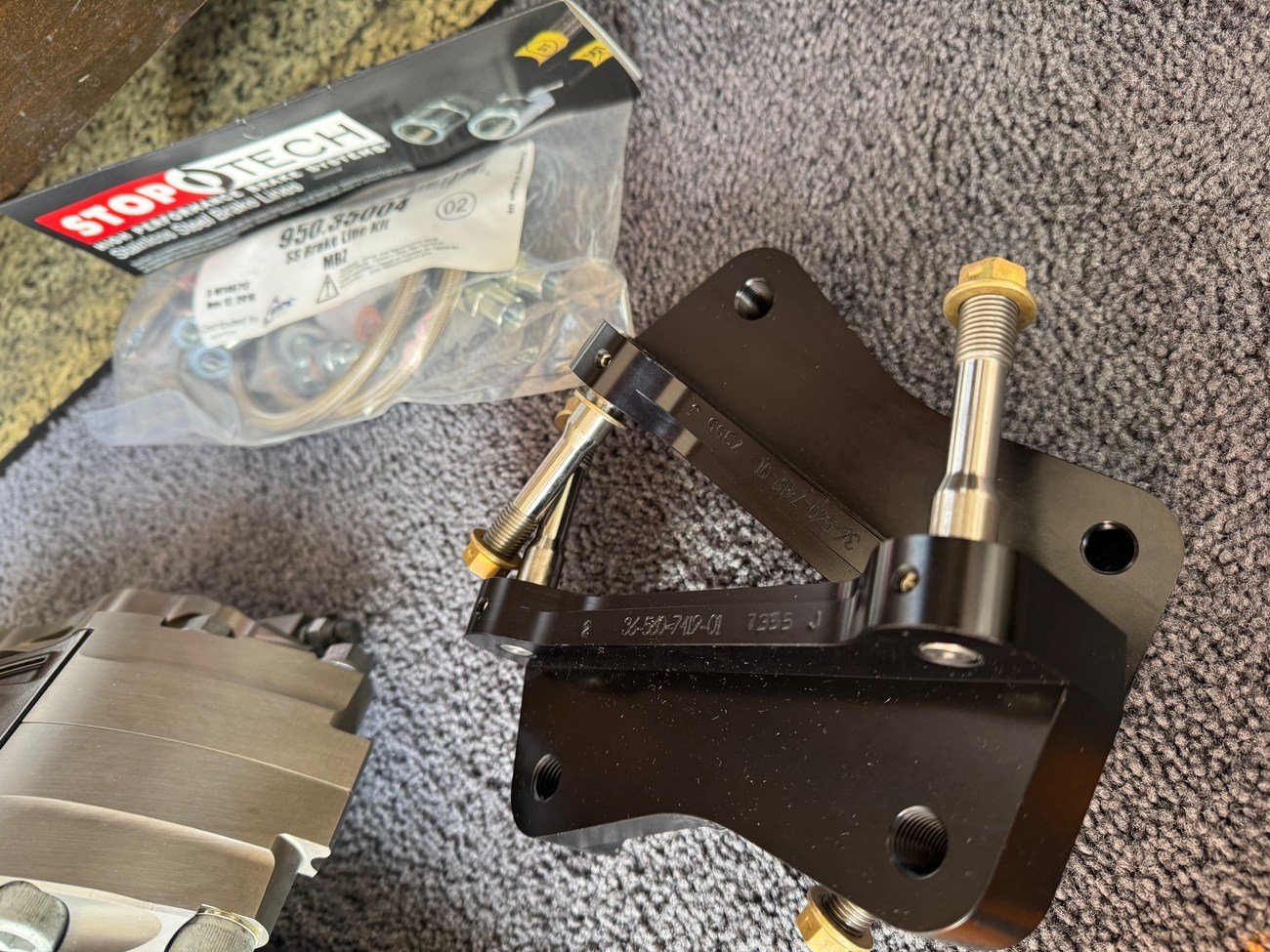 Brackets & Hardware: Hard anodized 6061-T6 billet aluminum caliper mounting brackets with stainless steel studs