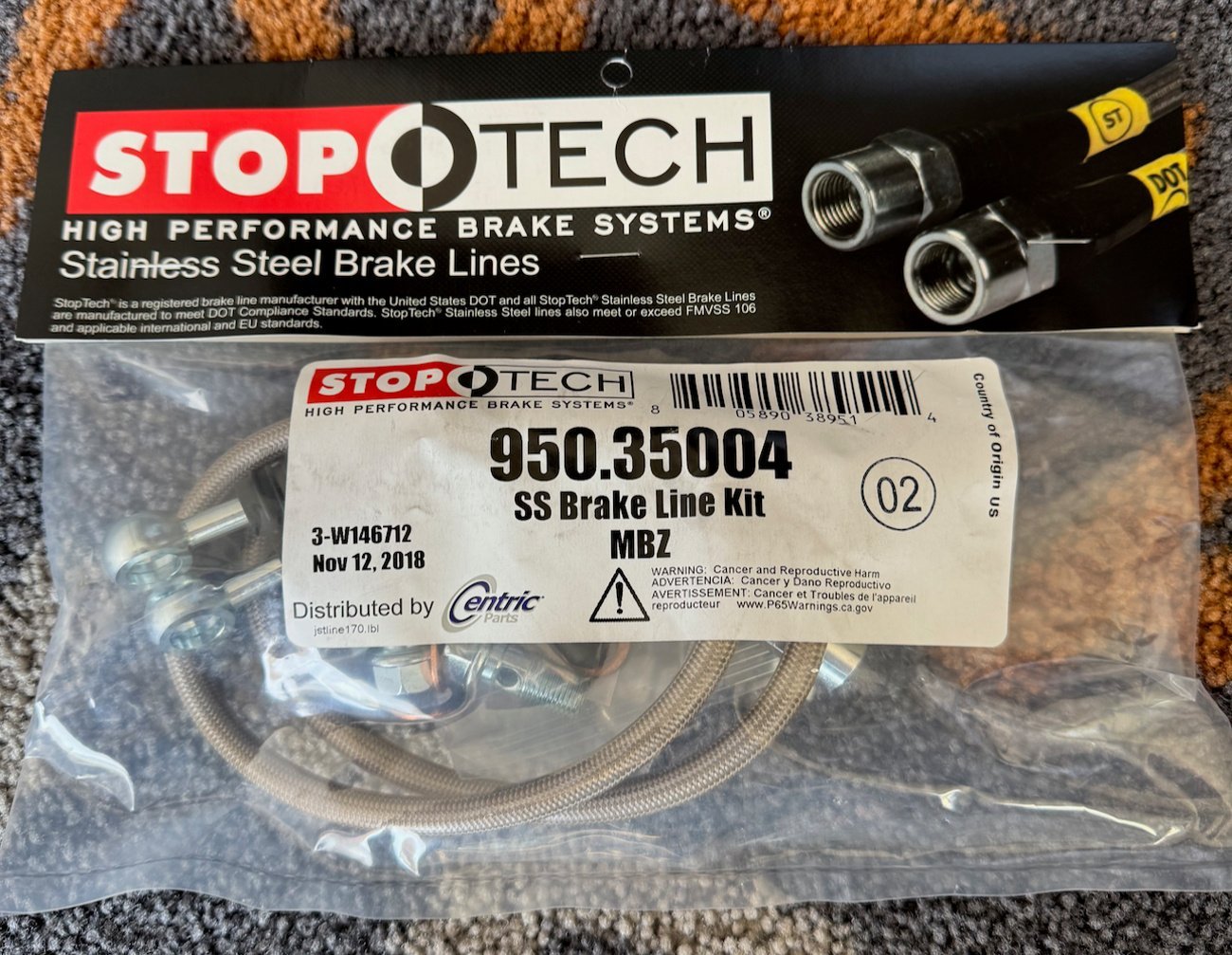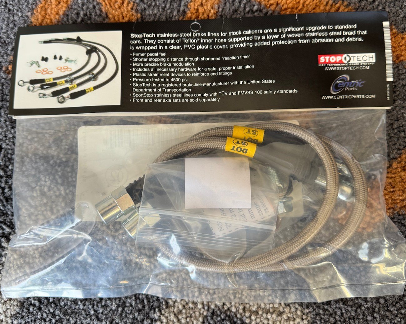 Upgraded stainless steel brake lines replace OEM rubber for firmer pedal feel