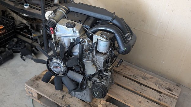 Used Mercedes-Benz OM604 diesel engine in reliable, good working condition. This is the compact 4-cylinder member of the legendary OM60x engine family, sharing core design traits with the OM605 and OM606. The OM604 was originally sold naturally aspirated, but when paired with a turbo upgrade and a larger mechanical injection pump, it becomes an excellent lightweight performance platform capable of impressive power gains.