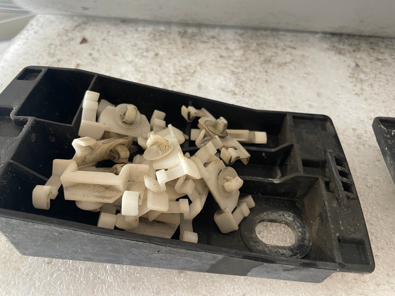 Full set of mounting clips, tabs, and internal supports as removed from the original vehicle